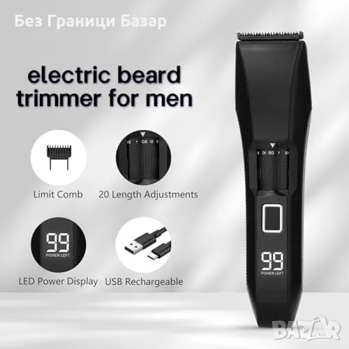 Нов Тример за брада и тяло – 20 степени, LED дисплей, прецизен нож мъже