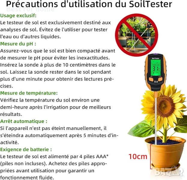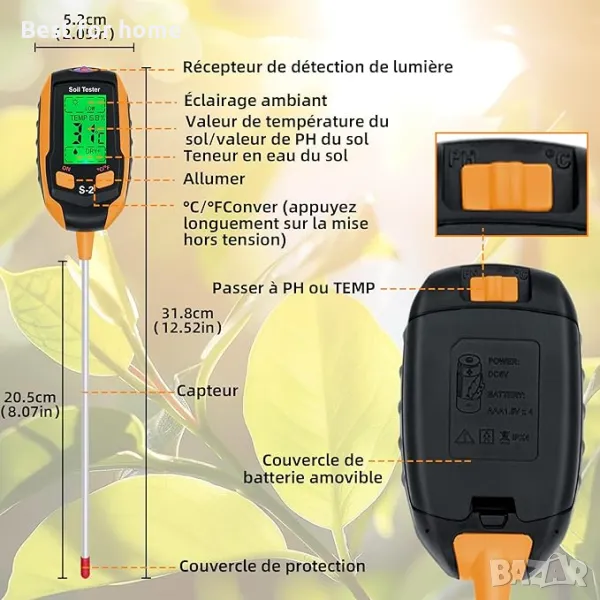 【Лесен за използване】Просто поставете сензорната сонда в земята на дълбочина 3-4 инча и изчакайте 5-10 секунди, за да получите данните от измерването. Можете лесно да превключвате между PH/TEMP и устройството се предлага в скала °C/°F. - Глюкомерът се захранва от 4 AAA батерии (НЕ СА ВКЛЮЧЕНИ), което го прави лесен за използване и поддръжка.