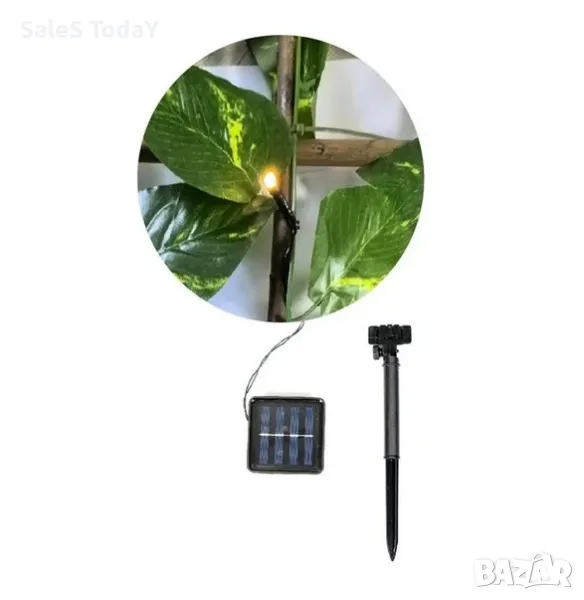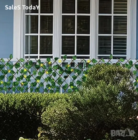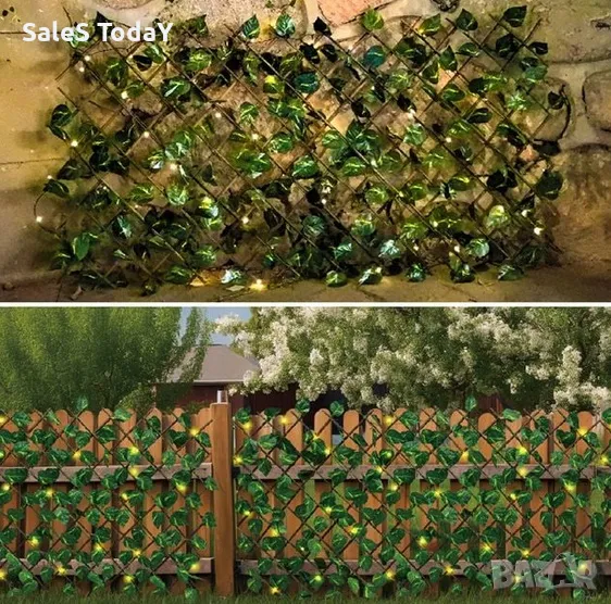 Декорация за стена от изкуствени листа и лампички, Солар, Преграда за балкон, Пергола, 170*90см