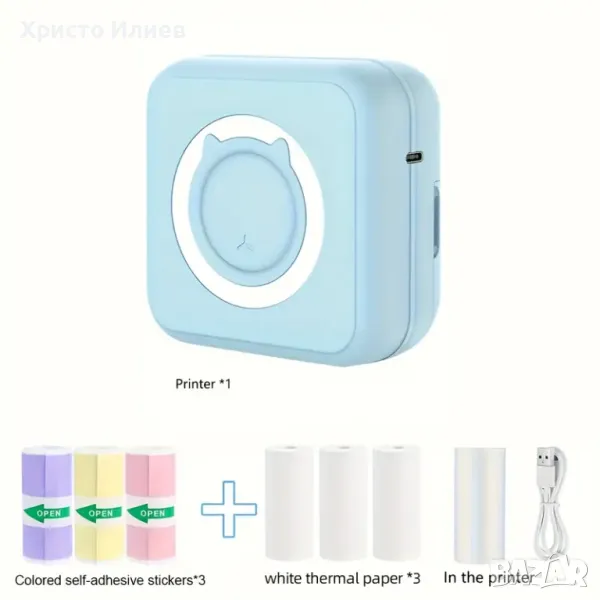 Преносим Мини принтер коте с подарък хартия термопринтер с Bluetooth син