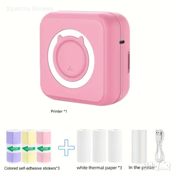 Този мини преносим, джобен принтер използва термичен печат, което означава, че не се нуждае от мастило за принтиране! Той работи с безплатно приложение и е съвместим е с всички смартфони на пазара.