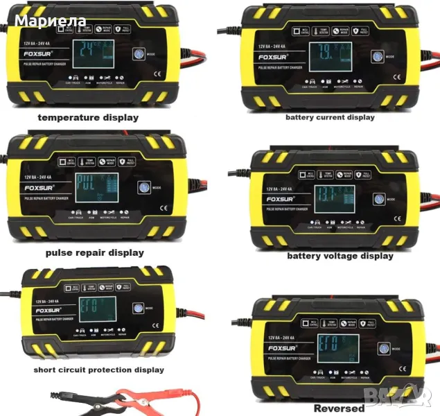 Висока съвместимост: Подходящ както за 12V, така и за 24V батерии, което го прави по-лесен за използване. Работи с калциеви, AGM, EFB, MF, FLOODED, VRLA, SLA и Wet батерии, което означава, че може да се използва за батерии в автомобили, камиони, мотоциклети, RV, SUV, ATV, колички за голф, триколки, селскостопански превозни средства, автобуси и др. Забележка: Не е подходящ за литиеви батерии