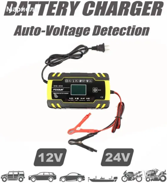 Автоматично зарядно устройство за мотоциклет, кола, камион, косачка, яхта