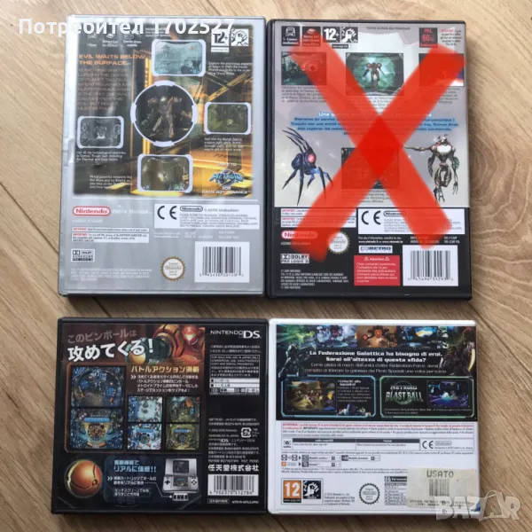 Продават се следните игри от поредицата Metroid за Gamecube и Nintendo DS на обща цена 70 евро. По-долу има информация за състоянието и цени по отделно.