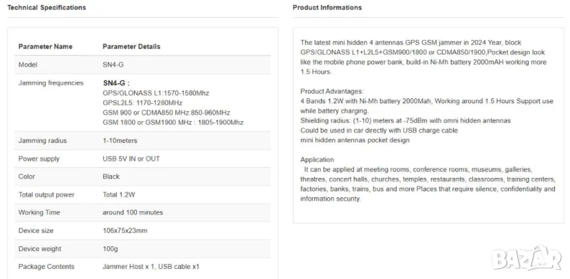 Предимства: най-новия с мини скрити 4 антени GPS GSM заглушител през 2024 г., блокира GPS/GLONASS L1+L2L5+GSM900/1800 или CDMA850/1900. Джобен дизайн прилича на банка за захранване на мобилен телефон, вградена Ni-Mh батерия 2000mAH работи повече от 1.5 Часа.