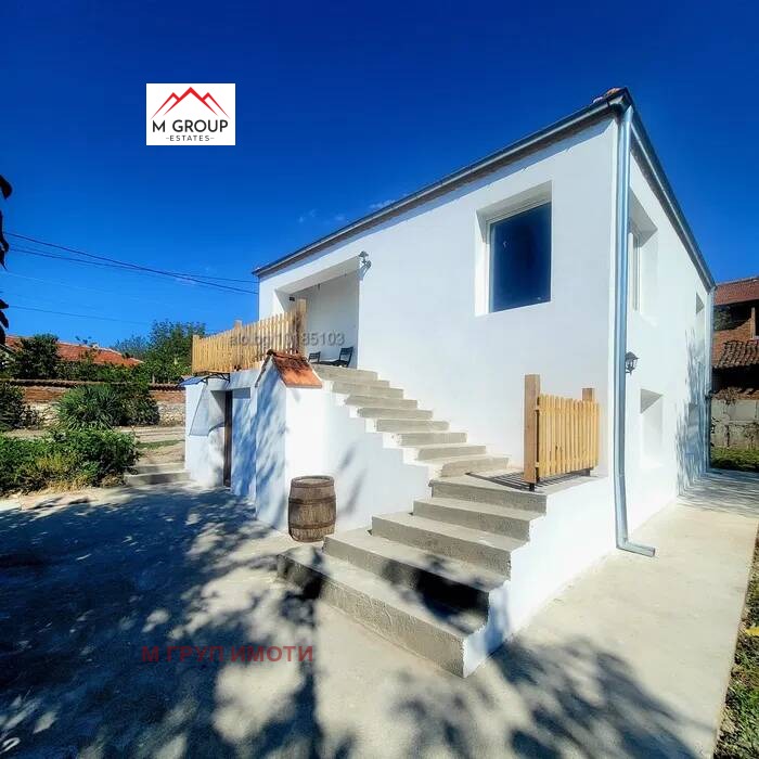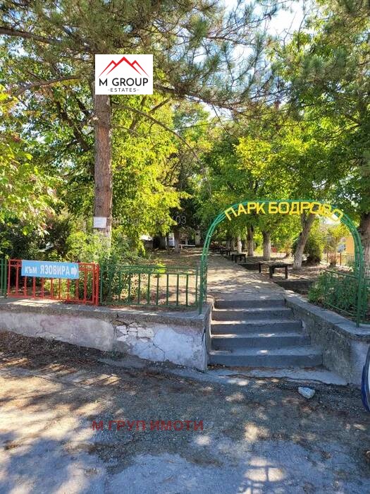 М ГРУП ИМОТИ предлага на Вашето внимание къща с двор в село Бодрово намиращо се на 55км. от град Пловдив, 16км. от град Първомай и 28 км. от град Хасково. Близо до Бодрово се намират Хасковските минерални бани. Къщата, която Ви предлагаме е на два етажа с каменни основи и тухли. Първият етаж се състои от три стаи, антре и баня, а на втория има голям хол, антре и стая. Направен е чисто нов покрив с нов комин и нови улуци. Навсякъде е поставена нова дограма, подменени Ел. и ВиК инсталациите и е направена е външна изолация. Дворът в който е разположена къщата е 1100кв, м, и в него има два кладенеца и подготвени площадки за барбекю зона и гараж. От двора се открива прекрасен гледка към връх Драгойна а, теренът около селото е изпълнен с разнообразни гори, дерета и ливади. Собствениците предлагат решение за довършване на вътрешния интериор по избор на клиента, както и оформяне на градинската част.