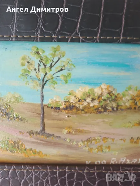 Маслена картина подписана , 21-16 см с кожената рамка , секнадуредб