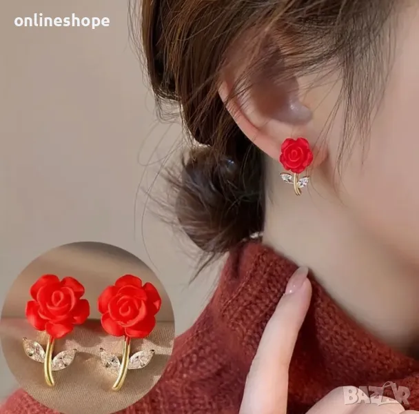 Обеци Роза с 22к златно покритие. Пристигат с кутия.