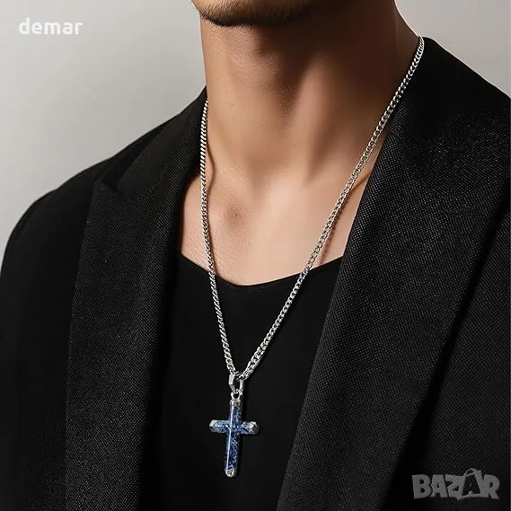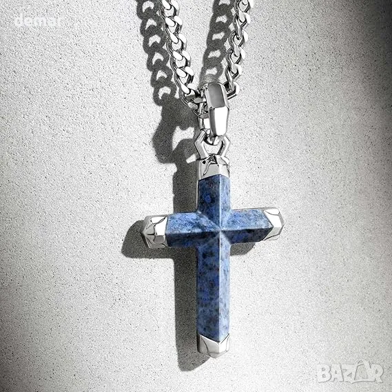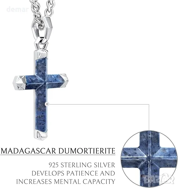 AWNL Кръстова огърлица за мъже със скъпоценен камък Dumortierite