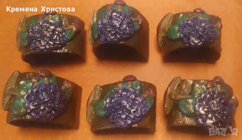 Комплект от пръстени/рингове/ за салфетки, ръчно изработен от папиемаше и глина.Състой се от 6 бр. пръстени/рингове/.
