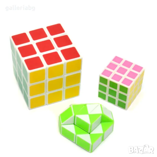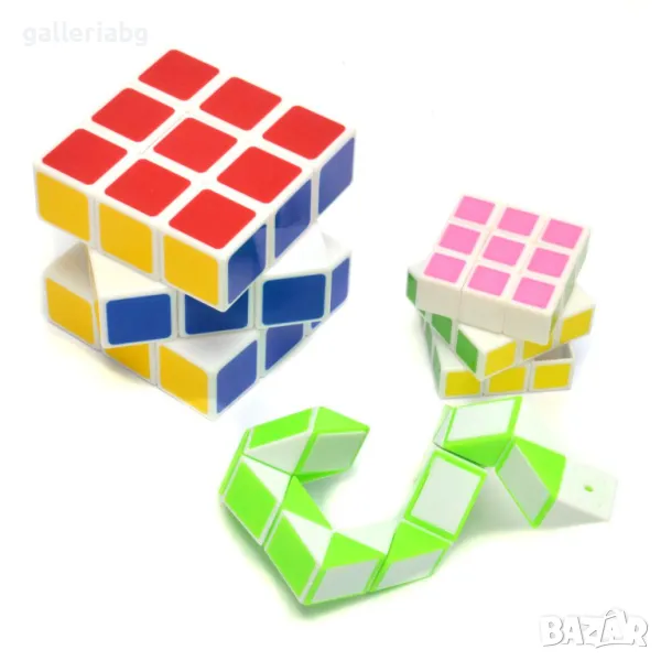 Забавна занимателна игра - комплект цветни кубчета на Рубик и змия.