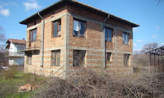 Този имот се намира в голямо и добре уредено село на около 10 км от административния град Видин. Имотът е тухлен, двуетажен, с циментови плочи и колони,с 160 кв.м жилищна площ(80 кв.м на етаж). Разпределението на къщата е следното - първи етаж: коридор,три стаи и мазе. Вътрешно стълбище води до втория етаж, който се състои от антре и четири стаи.Жилището е снабдено с ток и вода, но се нуждае от довършване, за да стане годно за живеене.