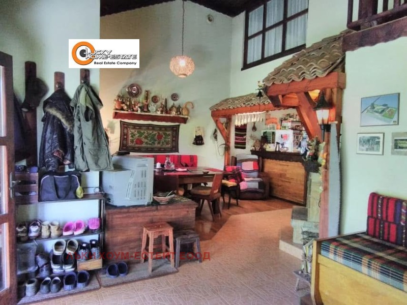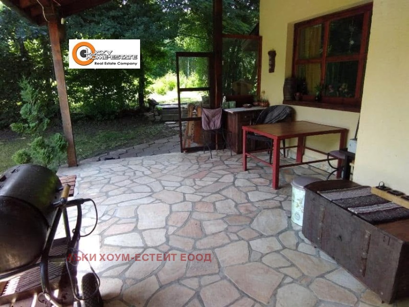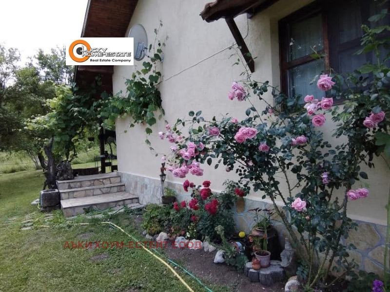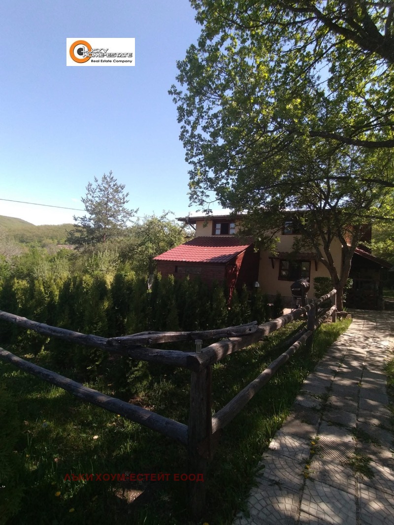 Лъки Хоум Естейт представя продажба на прекрасна къща монолитно строителство, в близост до София, подходяща както за целогодишно обитаване, така и за ваканционен имот. Построена е през 1985г., от тогава е интензивно обитавана и е с безупречна поддържка. Застроената площ е 60 кв.м., с тавански полуетаж от 30 кв.м. Разполага с 3 спални, баня, кухня и трапезария, веранда и обслужващи помещения. Дворното място е с площ от 800 кв.м, а в съседство се намира овощната градина с площ от 1120 кв.м., която е също така поддържана през годините и се ползва за отглеждане на вечнозелени дръвчета, както е видно от снимките.