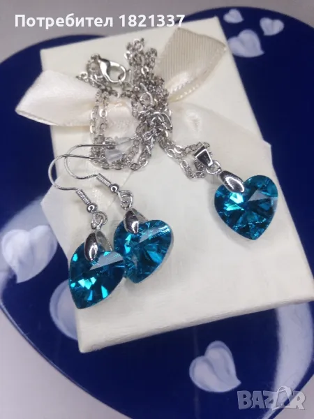 Комплект колие и обици с кристали. С подаръчна кутийка.