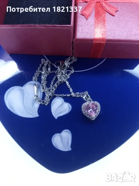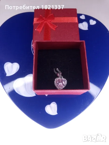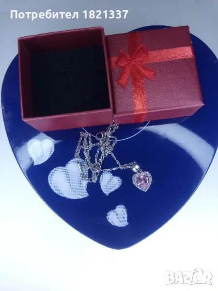 Колие с кристали. Форма на сърце. С подаръчна кутийка.