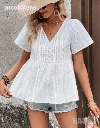 Нова модна дамска ежедневна бяла блуза с v-образно деколте