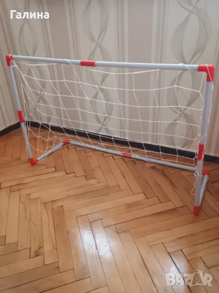 Без забележки, към нея има футболна топка и подарък помпа , с която може да се напомни. Подходяща, както за игра на двора, така и за детската стая. Размера на вратата е 97 см на 64 см. Изпращам с опция преглед и тест.