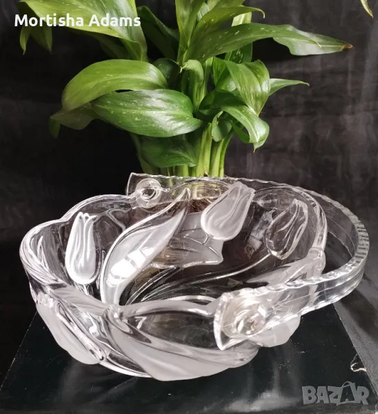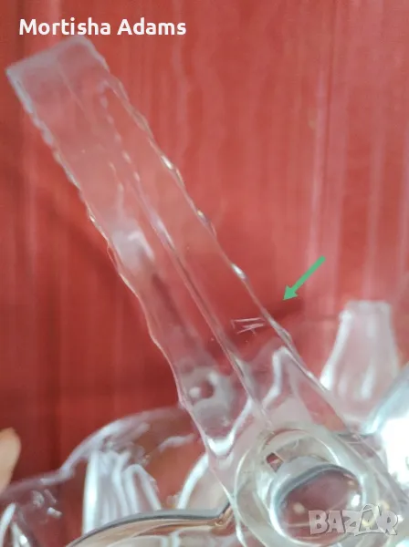 Прелестна, ефектна, нежна, с височина 8см. (без дръжката), и размери на отвора 18/14см. Дръжката е изработена от пластмаса и е с драскотинка, която едва се забелязва. Няма други несъвършенства.