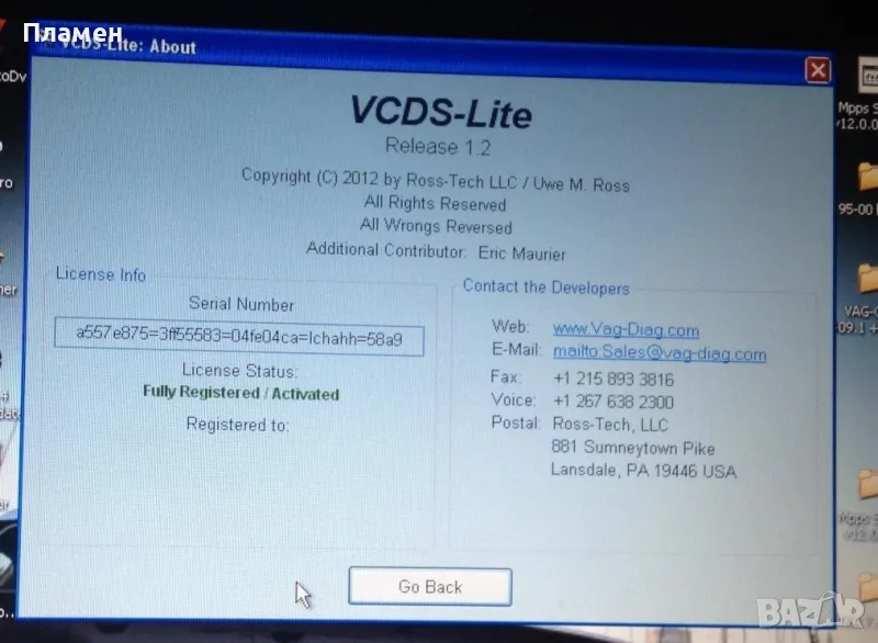 На закупилите интерфейса предоставям регистрирана и активирана кракната версия на VCDS-Lite, в която са елиминирани напълно ограниченията на предлаганата безплатно от Ross-Tech VCDS-Lite 1.2. Безплатната версия не може да сканира последователно всички контролери, а при откриване на грешки дава само първите две, останалите са обозначени само с кодове, без текстово обяснение.