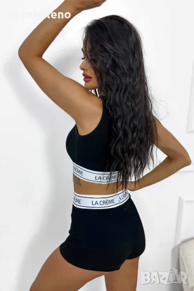Стилен и удобен комплект от мек, рипсен памук. Състои се от вталено горнище и къси панталони, завършени с бял ластик, който придава спортен характер. Перфектен за фитнес, за ежедневно носене или като основа за различни стилове.