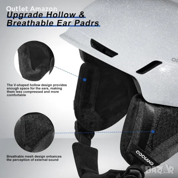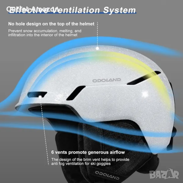 Блестяща ски каска Odoland, регулируема вентилационна система, защитна обвивка от EPS пяна за