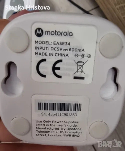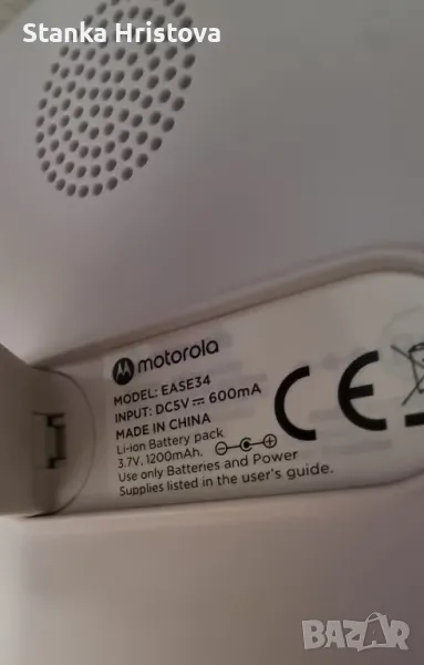 Продавам бебефон Motorola Ease 34. Чисто нов е, но батерията на предавателя е за смяна според мен, защото когато го зареждам показва , че няма батерия. Внос от Германия.