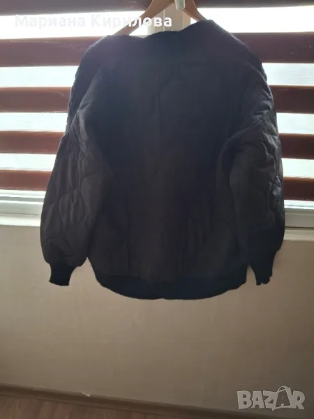 Черно яке бомбър с два джоба размери ръкав 50см.леко е паднал дължина яке 65см гр.об 124см