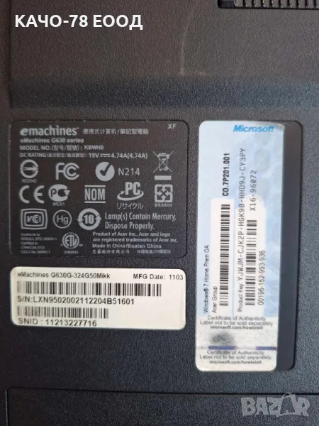 Лаптоп Emachines G630