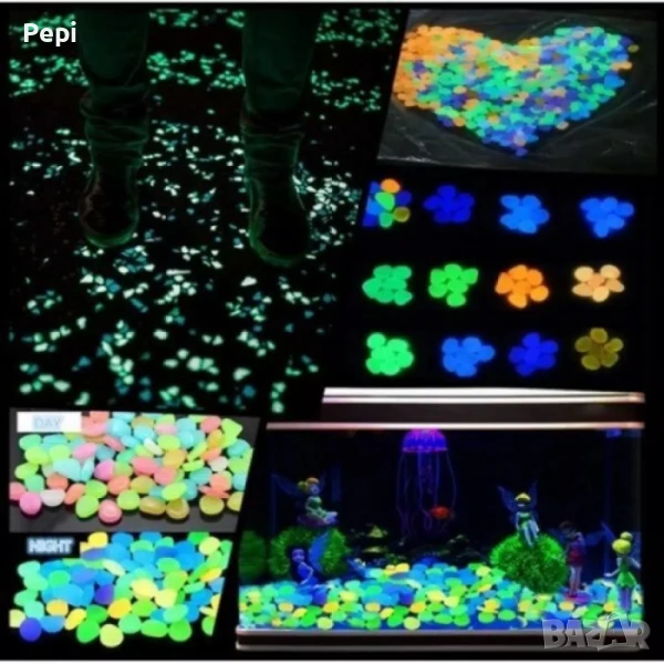 Светещи декоративни цветни градински камъни - 100 бр. - преобразете вашата градина, двор или балкон с уникална и ефектна декорация! Тези декоративни камъчета съчетават естетика и функционалност, като абсорбират слънчева светлина през деня и светят в тъмното, създавайки магическа атмосфера.