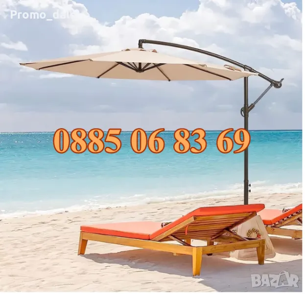 Градински висящ, сгъваем чадър, с включена метална стойка, осигурява оптимална защита от пряката слънчева светлина.
