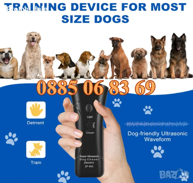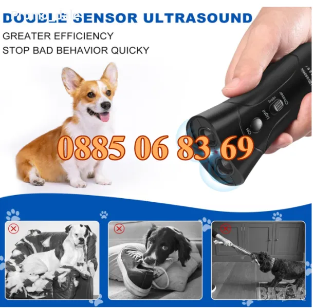 Мощен ултразвуков кучегон за защита от кучета, за дресиране на кучета