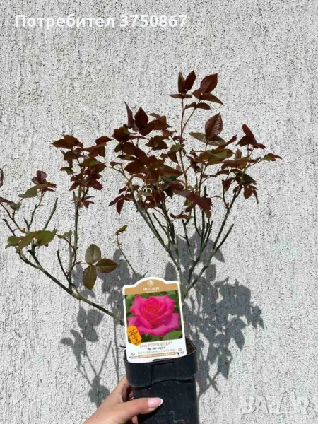 🌹РОЗА 🌹 VELASQUEZ® / Sexy PERFUMELLA® Meimirtylus 🌹🌹🌹🌹 VELASQUEZ® / Sexy PERFUMELLA® Meimirtylus e шедьовър на природата, посветен на велик художник от испанския Златен век. Цветето, с около 44 венчелистчета, е много оригинално със своя тъмно лилаво-розов цвят, съчетан със силен аромат на чаена роза. Растението се отличава с мощна вегетация, редовен цъфтеж и добра устойчивост на болести.🌹🌹🌹 Характеристики:Клас: Едроцветна храстовидна розаУпотреба: Изолирани, стени и огради, букетиФорма: ТрадиционнаЦвят: Тъмно розов люлякДиаметър: 13 смБрой венчелистчета: приблизително 44Аромат: Мощен, чаена розаЛиста: Гъста, тъмнозелена листна масаУстойчивост на болести: ОтличнаСъцветие: единичен цвятЦъфтеж: от пролетта до замръзванеВисочина: 90 / 150 см🌹 Награди: 2011:-Храдец Кралове, Чехия: Най-красивата роза с големи цветя-Лион, Франция: Голямата роза на века и престижът на розата-Дъблин, Ирландия: Най-добрата роза с големи цветя-Токио, Япония: Сребърен медал-Алтера Роза, Франция: Обществена награда🌹 Meilland е водещият френски производител на рози, с около 1,2 милиона продадени рози годишно и повече от 500 референции. Сортовете Meilland са обект на патенти, сертификати за сортове растения и търговски марки, за да се гарантира популяризирането им в повече от 40 страни. Френското производство, обхваща близо 2500 декара при различни почвени и климатични условия, което позволява по-голяма сигурност на производството и по-добро адаптиране.🌹 Розите са засадени в работни саксии и могат да се засаждат на постоянно място от ранна пролет до късна есен.👉👉👉 Цена 34,00 лв.🚘📦🚘 Изпращаме с куриер.може да направите поръчка и на телефони:☎️💌☎️ Reni's Gardens +359888873211 +359886771048#рози #VELASQUEZ®/SexyPERFUMELLA®Meimirtylus #Meilland #красивирози #ароматнирози