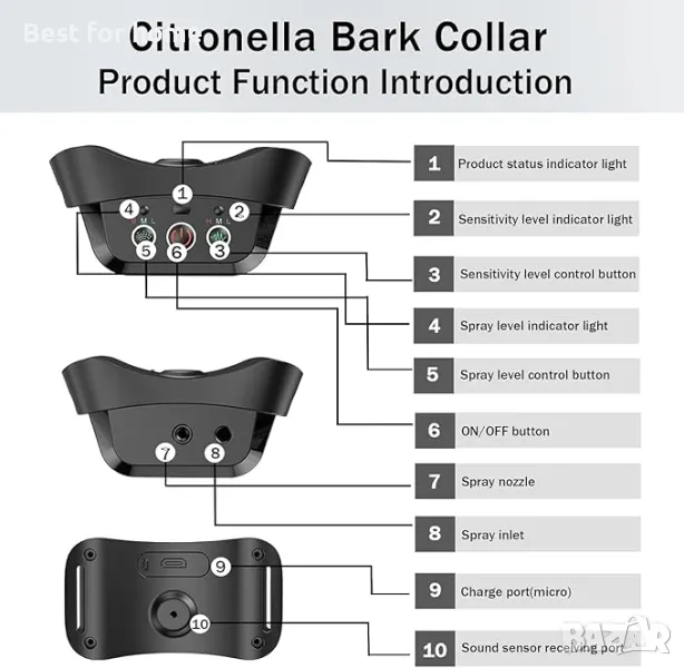 【Нашийникът за обучение на кучета е лесен за носене】Нашият нашийник с автоматичен спрей за контрол на лаенето е идеален за обучение на открито и игра с кучета. Носенето на нашийник против лай на кучетата няма да пречи на другите и може ефективно да контролира трениращите кучета. Външният звук или честота не пречи на продукта и може да се използва с увереност