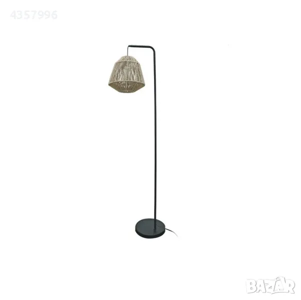 Декоративна настолна лампа с метална рамка, кабел 2м и висяща плетена шапка в естествен цвят.
