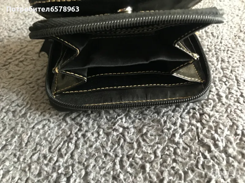 Продавам Унисекс ( за мъже и жени ) портмоне с много джобове . 1 основен джоб с цип вътре има 5 преградни джоба . 1 джоб за книжни пари , 3 джоба за банкови карти под тях има още един дълбок джоб , 1 прозрачен джоб за снимка или личен документ , 1 джоб за стотинки . Има и дръжка , но тя по-скоро е за красота и може да се сваля . Прозрачния джоб за лична карта и джобовете за банкови карти се затварят с тик-так копче . Горната част на тик-так копчето на джоба за стотинки липсва .Изпрашам с Еконт или Спиди .