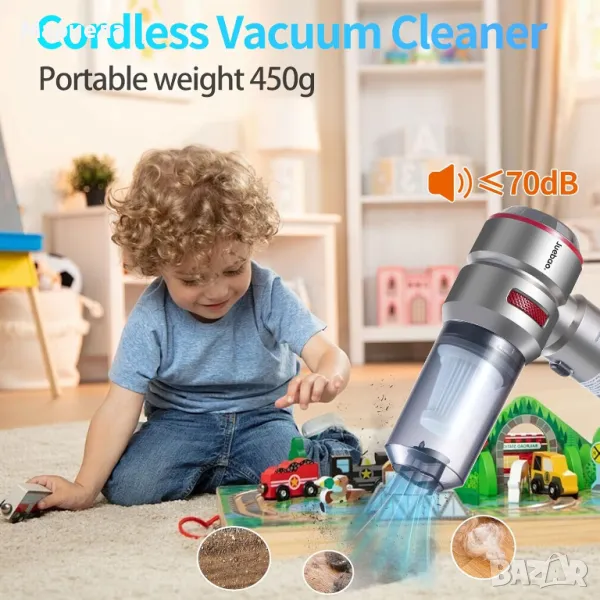 Тази лека и преносима прахосмукачки тип акула тежат само 450 грама, лесна са за съхранение и има по-голяма всмукателна мощност. Безжичният дизайн елиминира най-много и неприятностите от заплетени кабели, разполага с ергономично проектирана дръжка за по-лесно и по-ефективно почистване и защитава вашето семейство и деца.