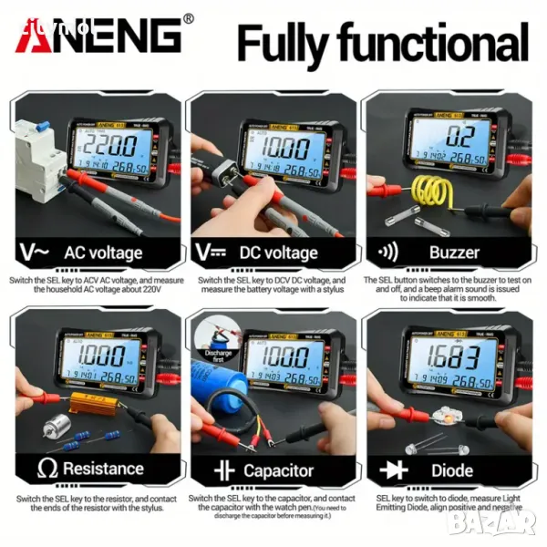 - Смарт мултиметърът ANENG 613, с 4,45" дисплей