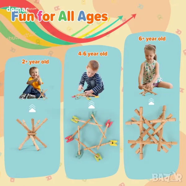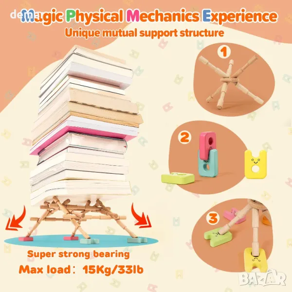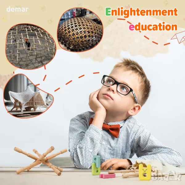 Този практичен комплект дървени играчки въвежда децата във физиката и архитектурните концепции чрез изграждане на балансирани структури като моста на Да Винчи с помощта на 12 гладки букови дървени пръчки и 8 цветни опорни блока. Проектиран с мисъл за безопасността, той насърчава креативността, пространственото съзнание и решаването на проблеми, като същевременно помага на децата да развият търпение и фокус. Цветните блокове предлагат стабилност по време на самостоятелна игра, а комплектът включва QR код за насочвано изграждане плюс платнена чанта за лесно съхранение и преносимост. Подходящо за деца на 4 и повече години, също така е чудесно занимание за свързване на семейства.