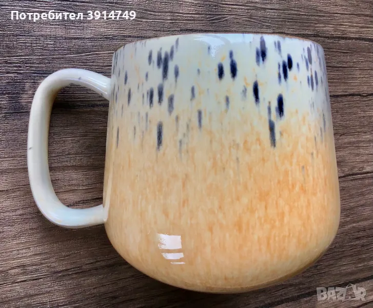 Солидна керамика, голям обем, удобна дръжка. Керамиката е с двойно изпичане с гланц отвътре и отвън. Отлична изработка!