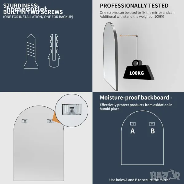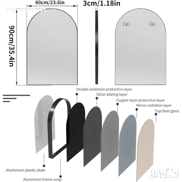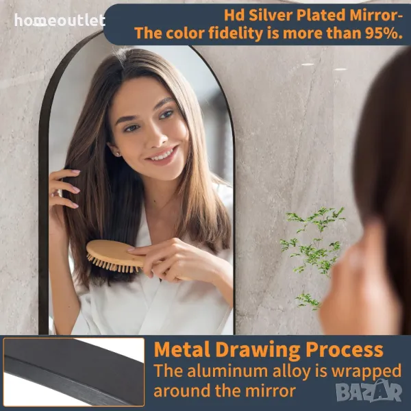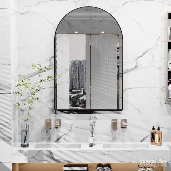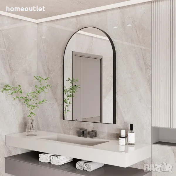 Горната част на огледалото е проектирана с извита подобна на арка рамка.
