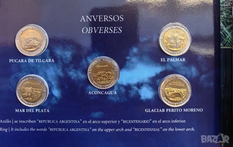 ч. Лот 5 броя Юбилейни монети 2010 г. Аржентина - в банкова опаковка UNC → Обява 49674732