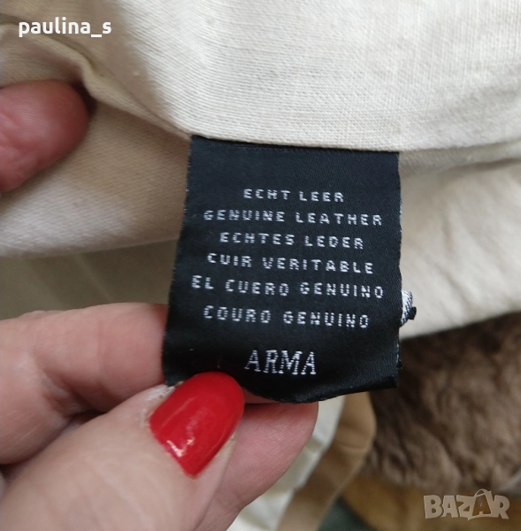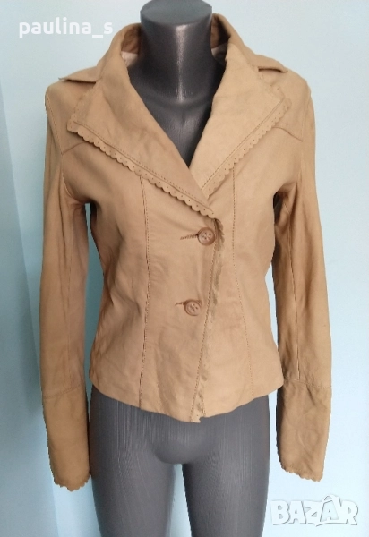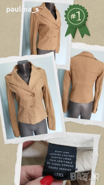 2️⃣. ХS / M- "Arma"Leather. Цената е крайна, без пазарлъци 59,99лв / 30 евро. Дизайнерско сако / яке от естествен мек набук, цвят нюд / телесна охра. Декорациите са от самата кожа на реверите и в края на ръкавите, ръкавите са с 2см по-дълги заради модела и се носят кокетно подфънати навън. Набукът се пере в пералня на програма за бельо. Дрехата е много впечатлителна и елегантна, без забележки.