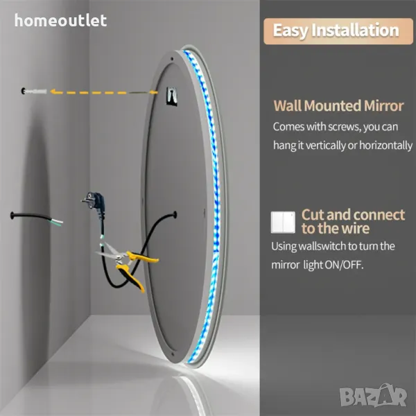 Огледалото за баня с LED осветление осигурява модерен външен вид и стил, който е идеален за всяко оформление на банята, както и подходящо осветление, което улеснява нанасянето на грим и грижата за лицето.