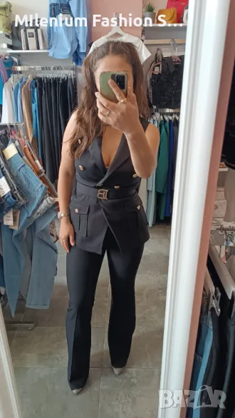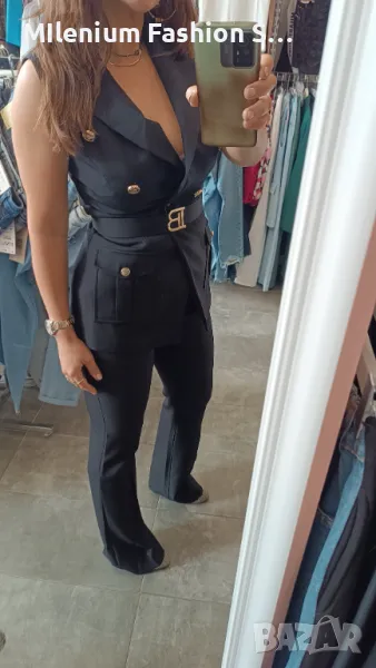 Страхотен дамски сет от две части,панталон и елек с коланче.Размери 36,38,40,42.Наличен и в бяло