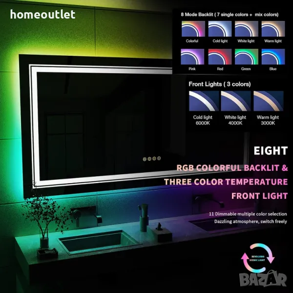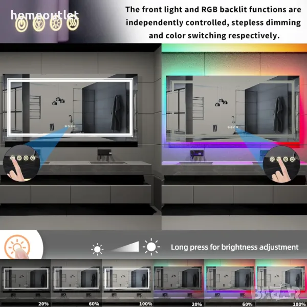 RGB огледало с двойни LED ленти: