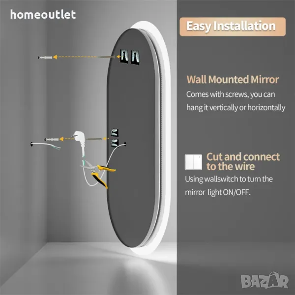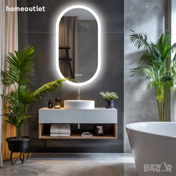Модерното LED огледало за баня има минималистичен дизайн с овална форма, който пасва на всеки интериор.