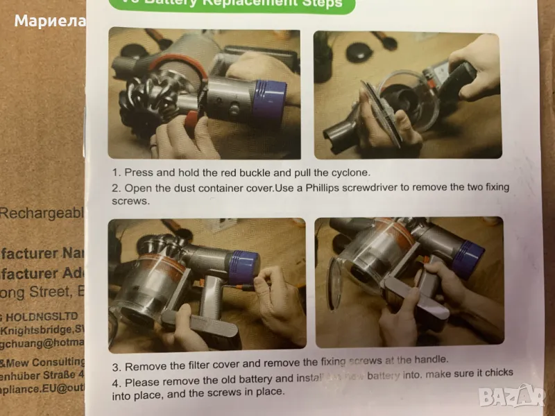 Замяна на батерия за Dyson V8 Absolute V8 Fluffy V8 Motorhead 21 6V 8000mAh.