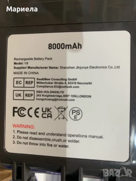 Резервна батерия 8000mAh за Dyson V8 / Animal V8 Motorhead V8 Absolute Pro SV10