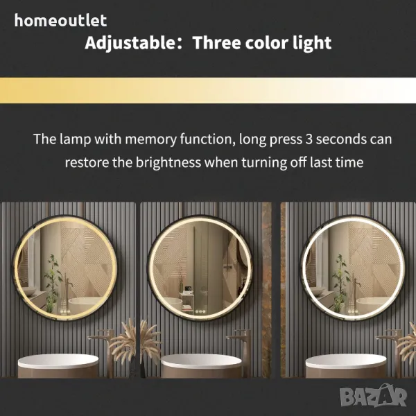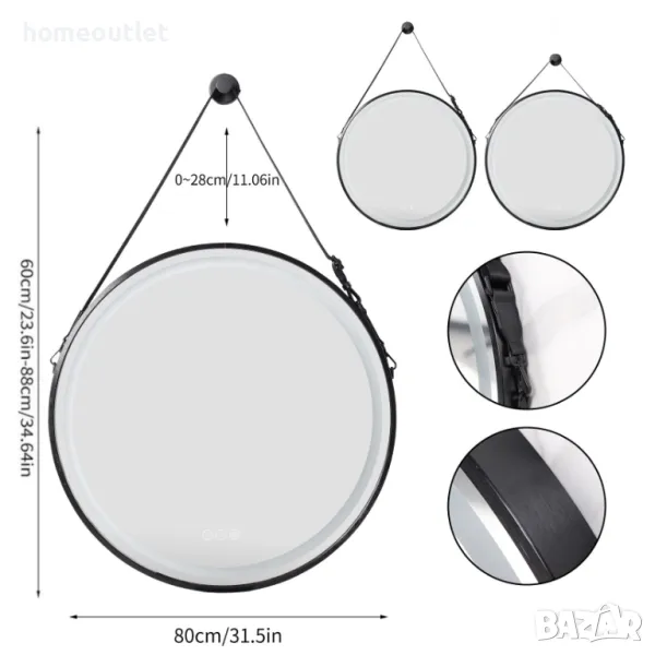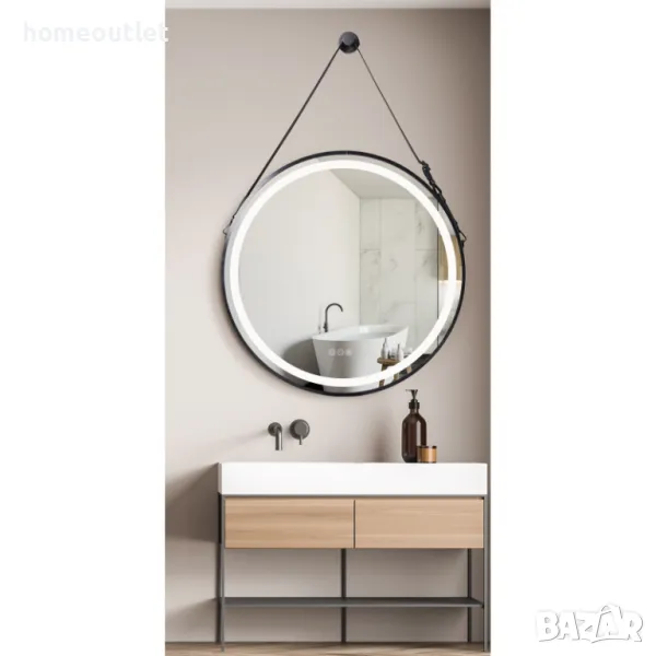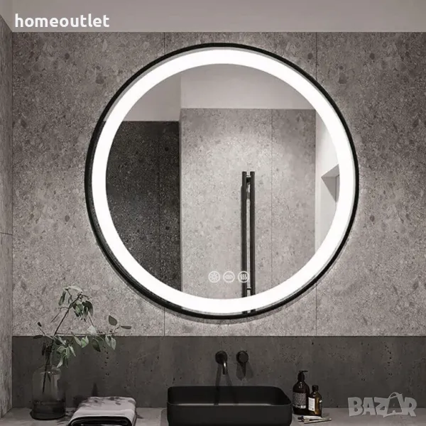 Модерното кръгло огледало има вградена подложка против запотяване, за нагряване на повърхността на огледалото ( 3-4 минути до 40 градуса)