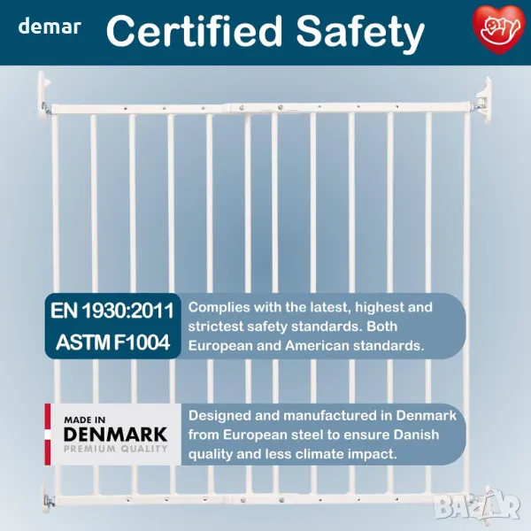BabyDan Бебешка врата (56,5-81,5 см), Регулируема и издръжлива, бяла, метална